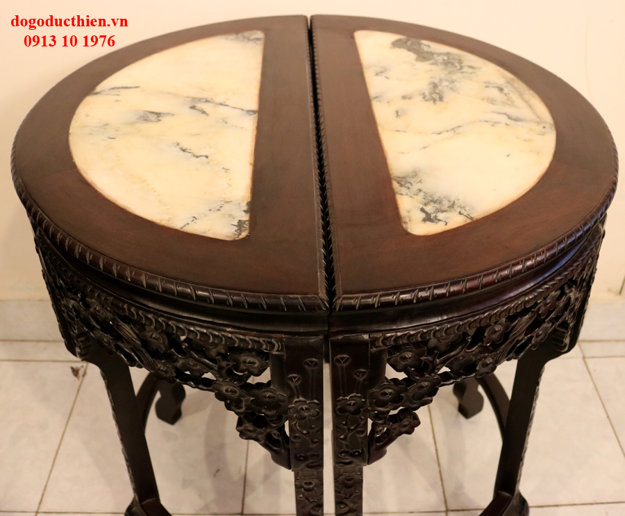 Đồ gỗ Đức Thiện xin giao lưu với các bác chiếc bàn bán nguyệt mặt đá đẹp. Sản phẩm được chạm theo lối mai điểu với ý nghĩa : Hoa mai 5 cánh tượng trưng cho 5 điều tốt lành bao gồm hạnh phúc, may mắn, trường thọ, thành công và hòa bình. Chim điểu theo tích là báo trước sự việc, mang điềm lành tới. Vì vậy tích mai điểu mang ý nghĩa mang tới tin vui, điều tốt lành cho gia chủ.
