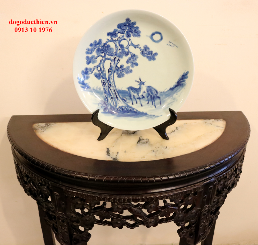 Bàn bán nguyệt đẹp ý nghĩa mai điểu sung túc, dùng trang trí trong phòng khách hay những không gian cổ.