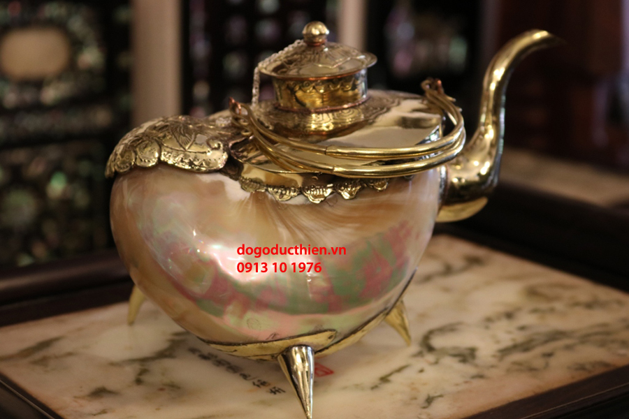 Bộ ấm chén trà được làm từ ốc sà cừ tự nhiên, dưới bàn tay trau chuốt của những người nghệ nhân tài hoa, nó trở thành một sản phẩm vô cùng độc đáo.