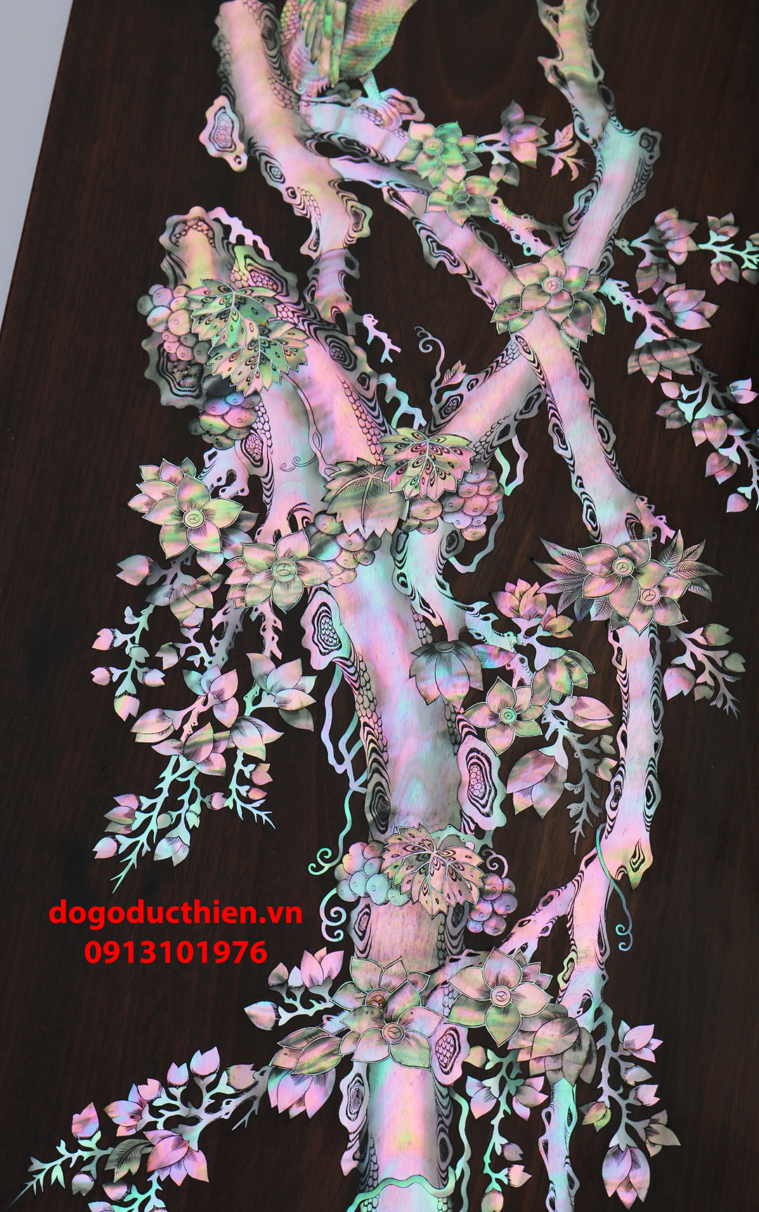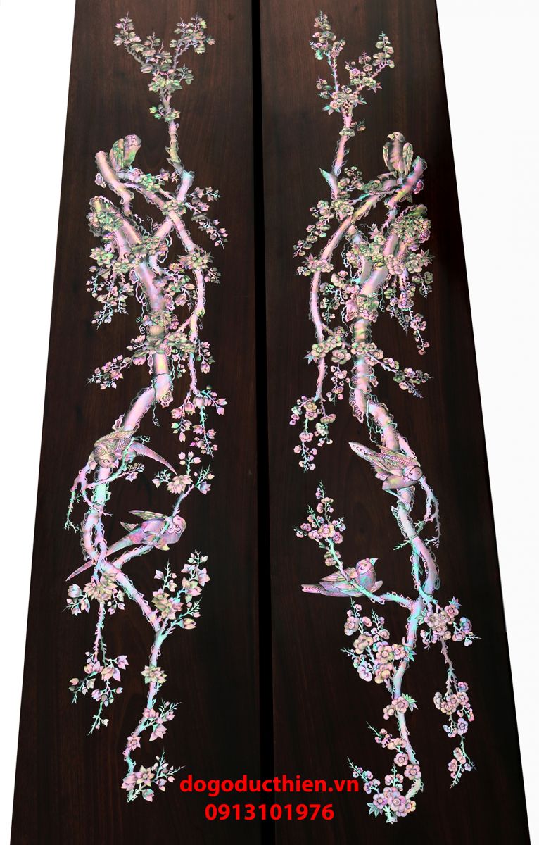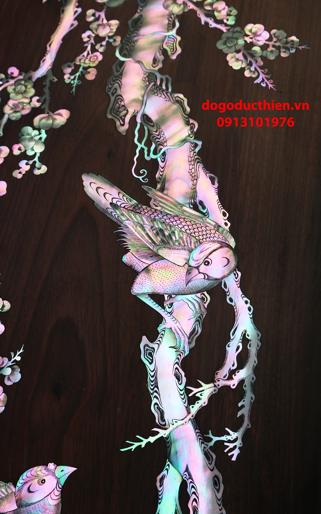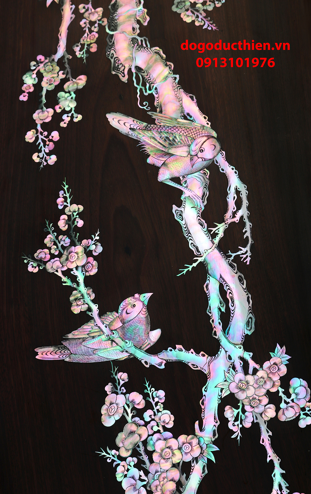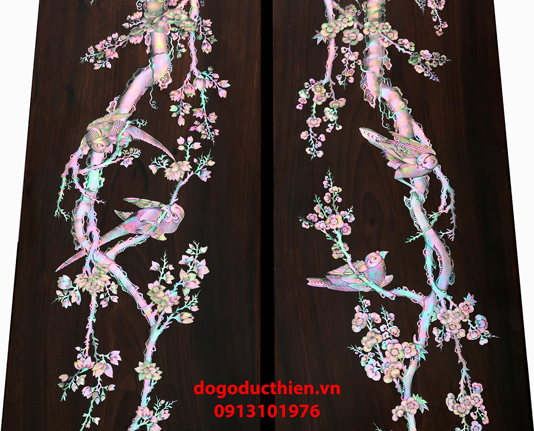 Chi tiết về Đôi Câu Đối Khảm Ốc Tích Mai Điểu Đẹp & Hiếm :