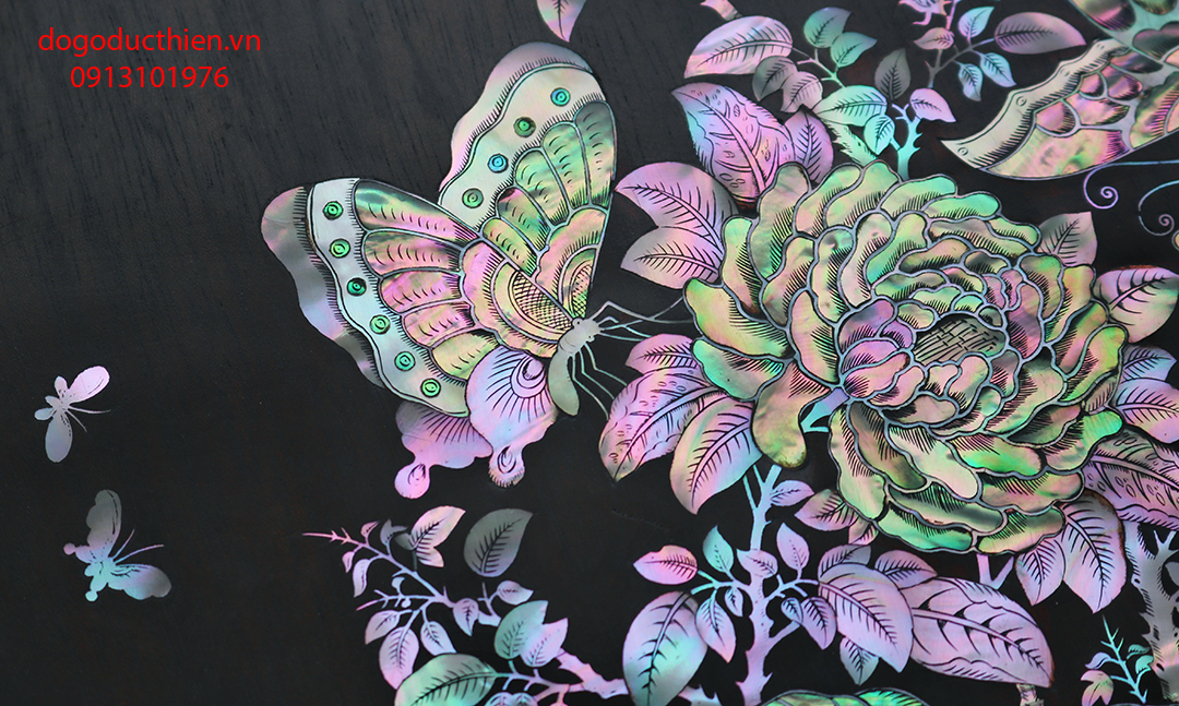 Khay dựng trầu qua bàn tay nghệ nhân đã trở lên vô cùng đặc sắc với những đường nét sắc xảo, màu sắc lấp lánh của ốc xà cừ - đỏ lửa vàng chanh xanh thiên lý. Sản phẩm thích hợp trưng bày không gian phòng khách kiểu cổ.