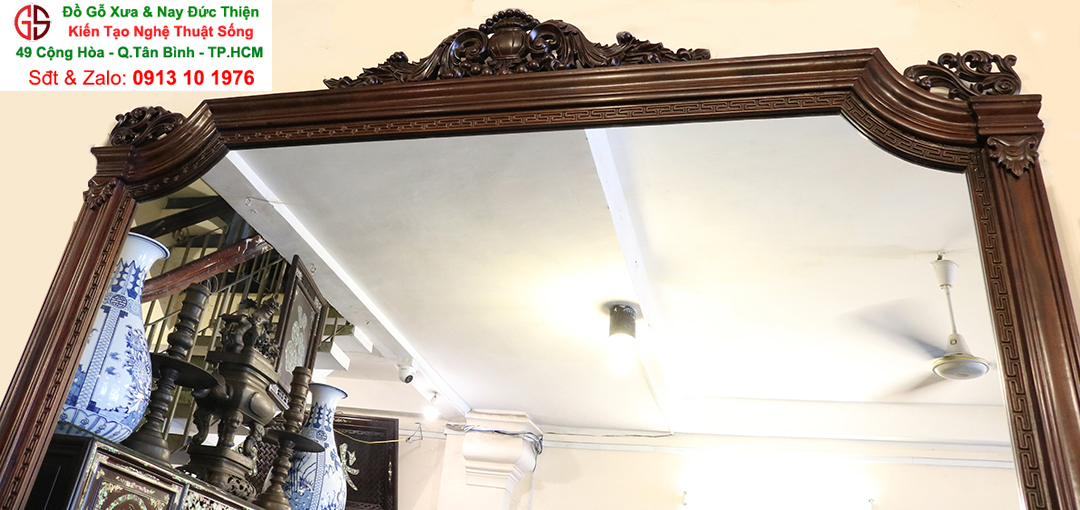 Biết được ý nghĩa tốt đẹp đó, Đồ Gỗ Xưa & Nay Đức Thiện xin giới thiệu đến các bạn chiếc gương khung gỗ chạm khắc đẹp thích hợp trang trí. Phòng khách nhà bạn sẽ sang trọng hơn khi có thêm một chi tiết nhỏ như gương trang trí. Với gương trang trí phòng khách bạn sẽ tôn lên được vẻ trang trọng và hiện đại cho không gian, nó cũng có thể là điểm nhấn cho phòng khách nhà bạn. Gương trang trí phòng khách luôn có những mẫu mã đẹp, hiện đại giúp cho việc kết hợp với các đồ nội thất trong phòng khách hoàn mỹ nhất.