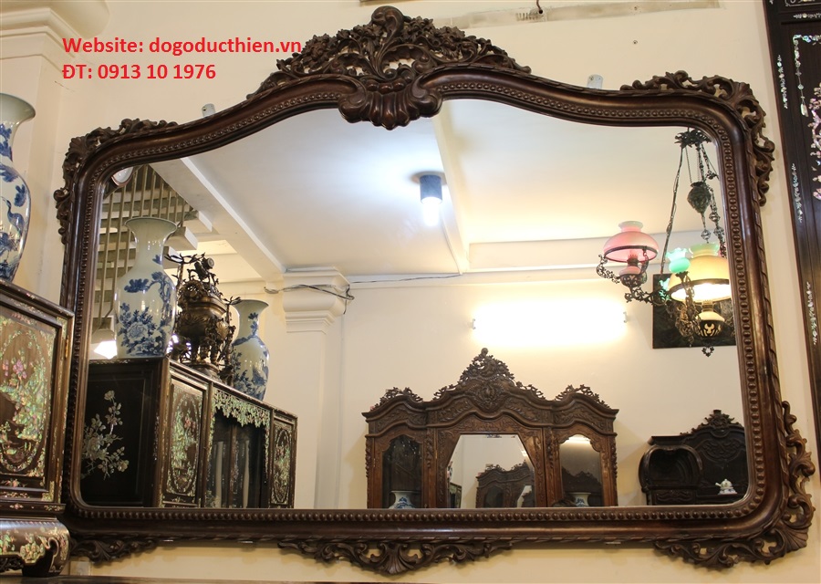 Với nối chạm khắc hoa văn hoa lá tây theo phong cách Pháp sang trọng, chiếc gương là vật dụng trang trí không thể thiếu cho biệt thự, cửa hàng, tiệm vàng...