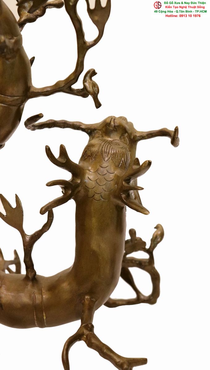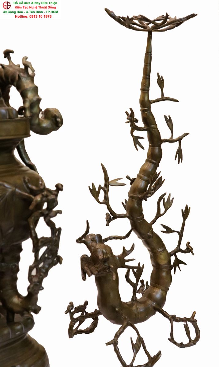 bộ lư đồng đẹp xếp vào loại xưa nay hiếm, bộ lư đồng trúc hóa rồng ( lư trúc hóa long ) được đúc thủ công tay bởi nghệ nhân Huế theo kiểu xưa