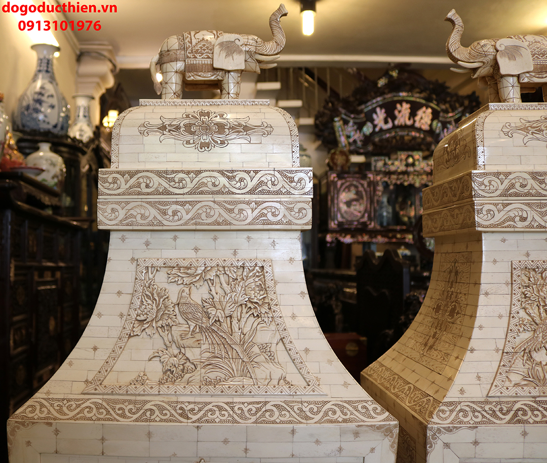 Với chất liệu chủ đạo là xương voi hết sức quý hiếm ( theo phong thủy voi mang lại sự may mắn bình an, hưng thịnh cho gia chủ) dưới bàn tay tài hoa của người nghệ nhân, từng đường nét được chạm khắc thủ công sinh động vô cùng tinh tế.