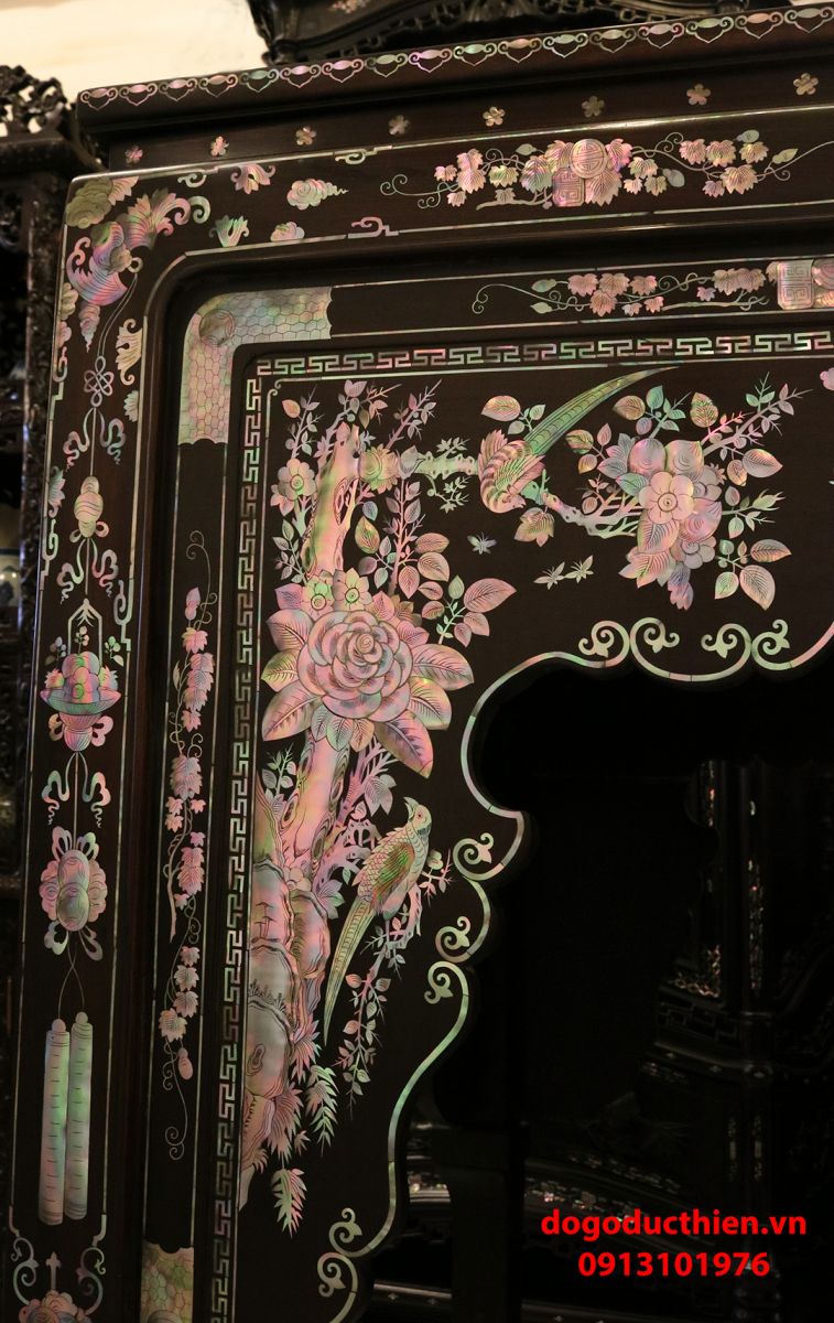 + Tất cả đều được làm từ gỗ gụ 100%, gỗ lục lõi, không chắp ghép và không bám rác ( Bán bảo hành Gỗ Gụ) khảm ốc xà cừ đỏ lửa - vàng chanh - xanh thiên lý