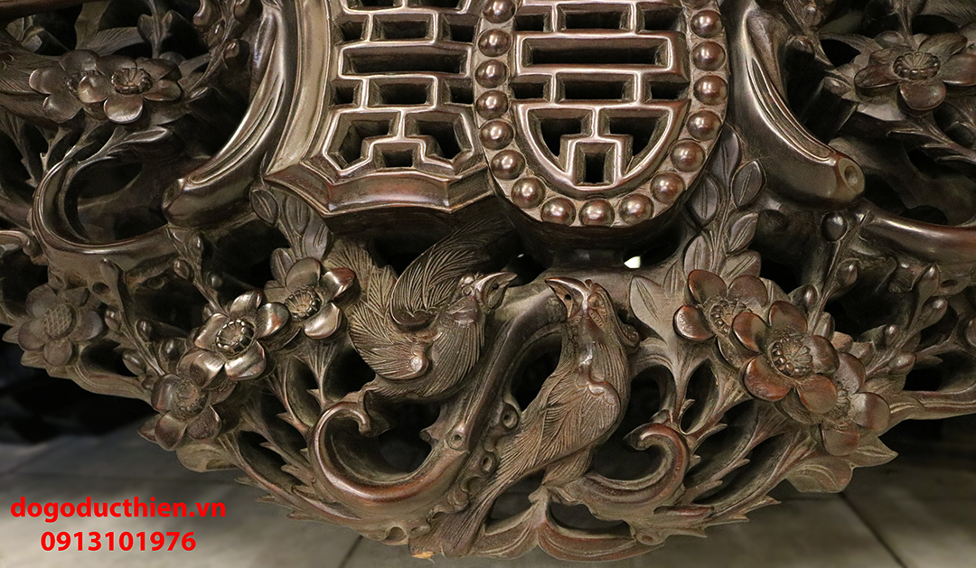 Hình ảnh chi tiết mẫu sập Mai Điểu với những hình chạm khắc tinh tế đầy tinh xảo: