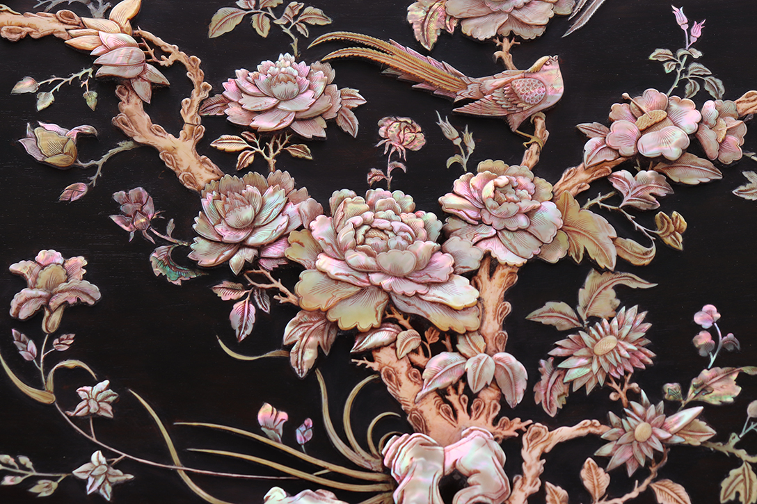 Một bức tranh khảm ốc đẹp thuộc loại siêu kinh điển, hiếm có khó gặp được làm lên bởi bàn tay của người nghệ nhân cũng là người họa sĩ thiên tài xứ Huế đề tại Vinh Hoa Phú Quý đầy chất nghệ thuật.