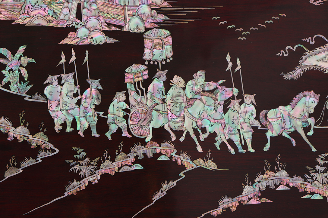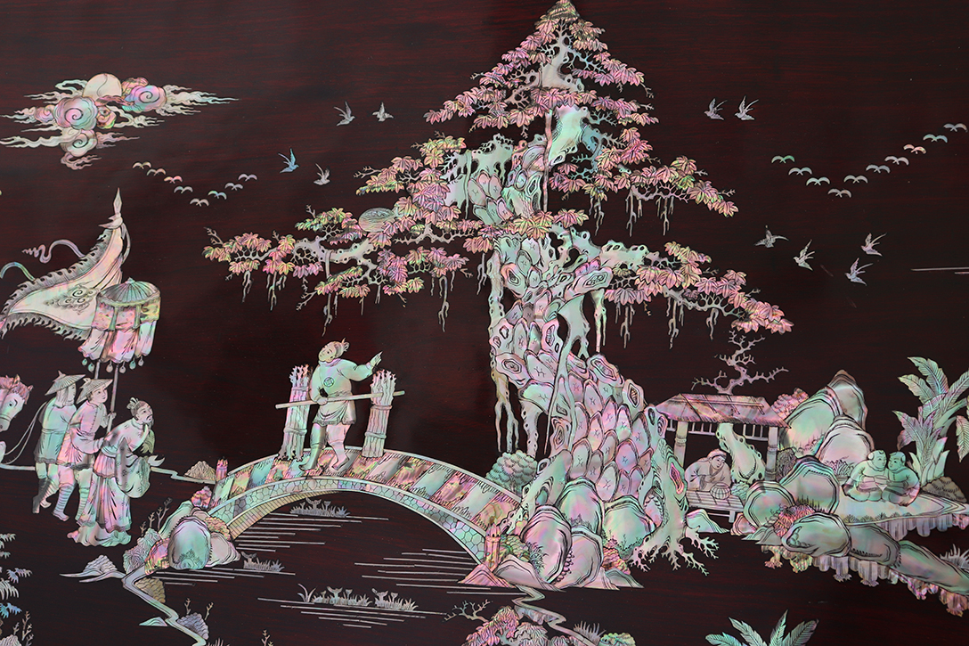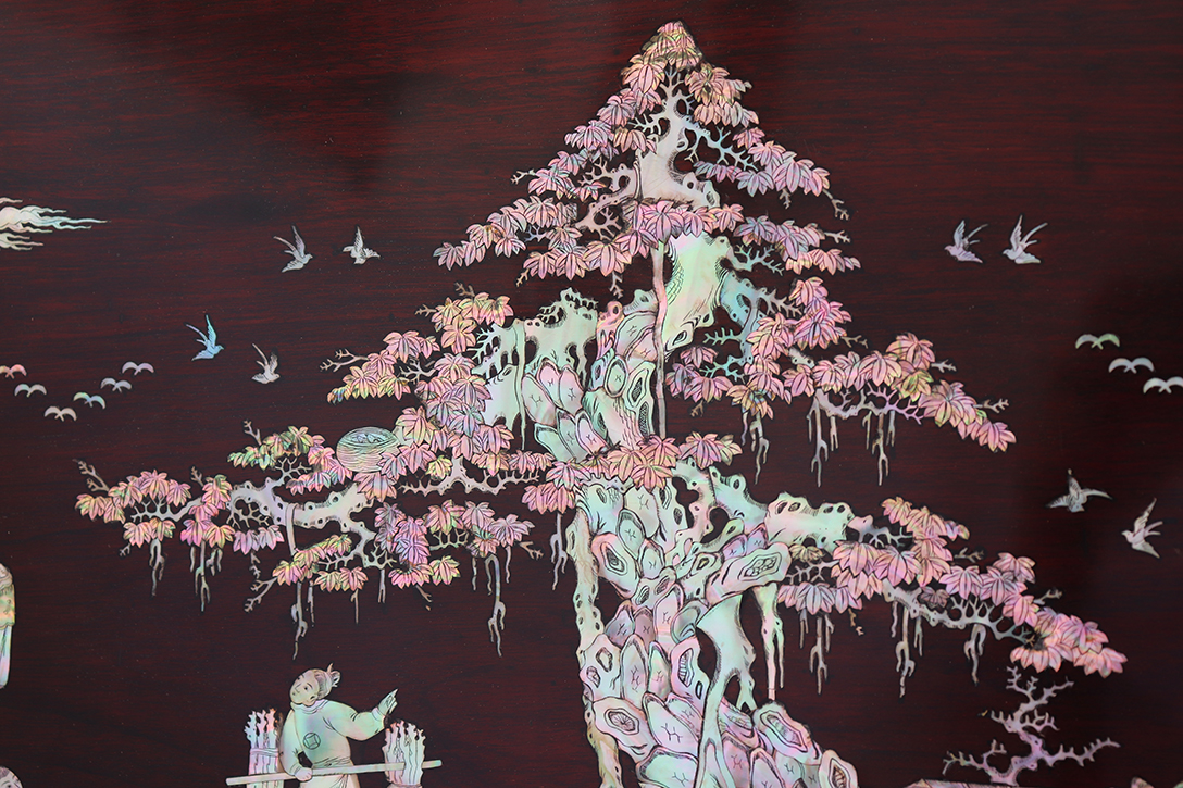 Là một bức tranh cẩn ốc rất đẹp và có giá trị, từ đục chạm chất ốc, chất mộc đều thuộc hàng đẳng cấp, xứng đáng là món đồ chân quý.