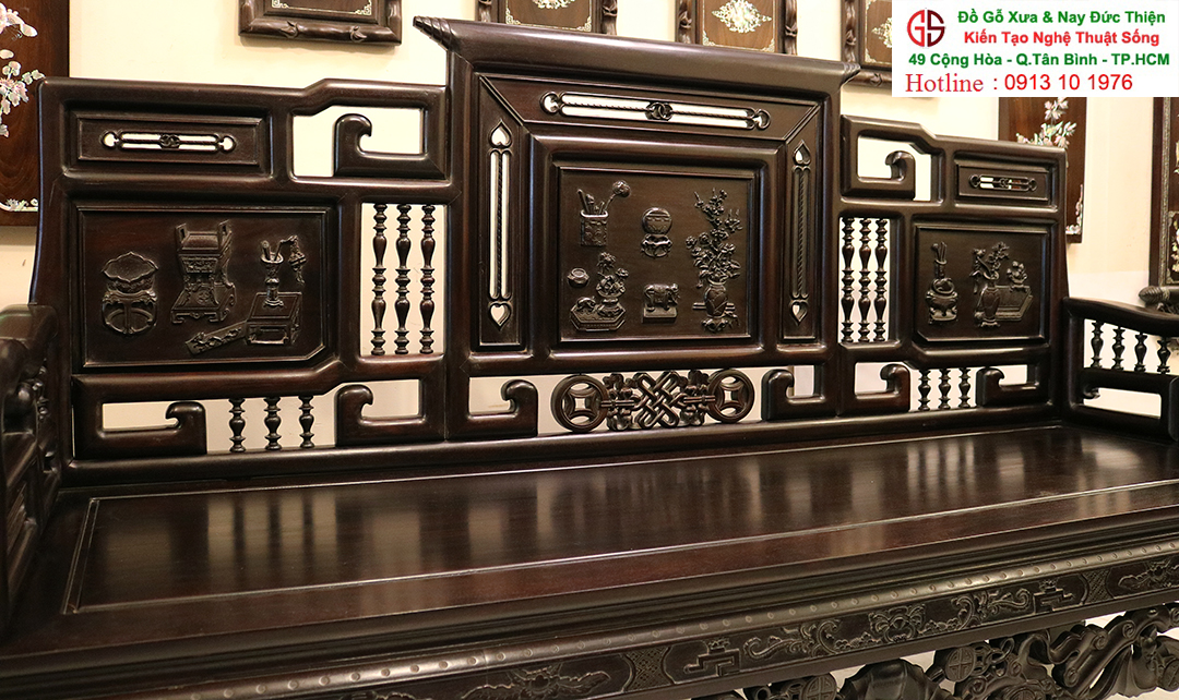 - Bàn ghế trường kỷ cổ: Trường Kỷ Trúc Nho, trường Kỷ Tích Cổ Đồ, trường Kỷ Huế triện tàu lá dắt, trường kỷ tam sơn cẩn ốc, trường kỷ ngũ lân vờn cầu, trường kỷ chạm mai.