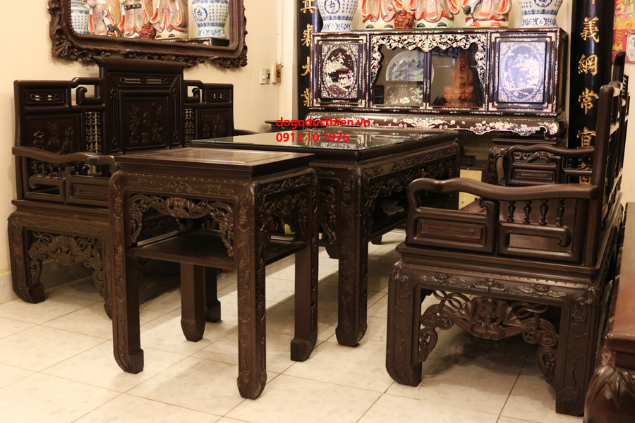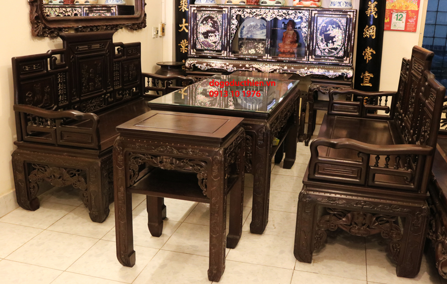 - Bàn ghế Louis, đôn trống gỗ trắc, bộ bàn ăn cẩn ốc, bàn ghế phương kỷ, bàn trung đường cẩn ốc xà cừ