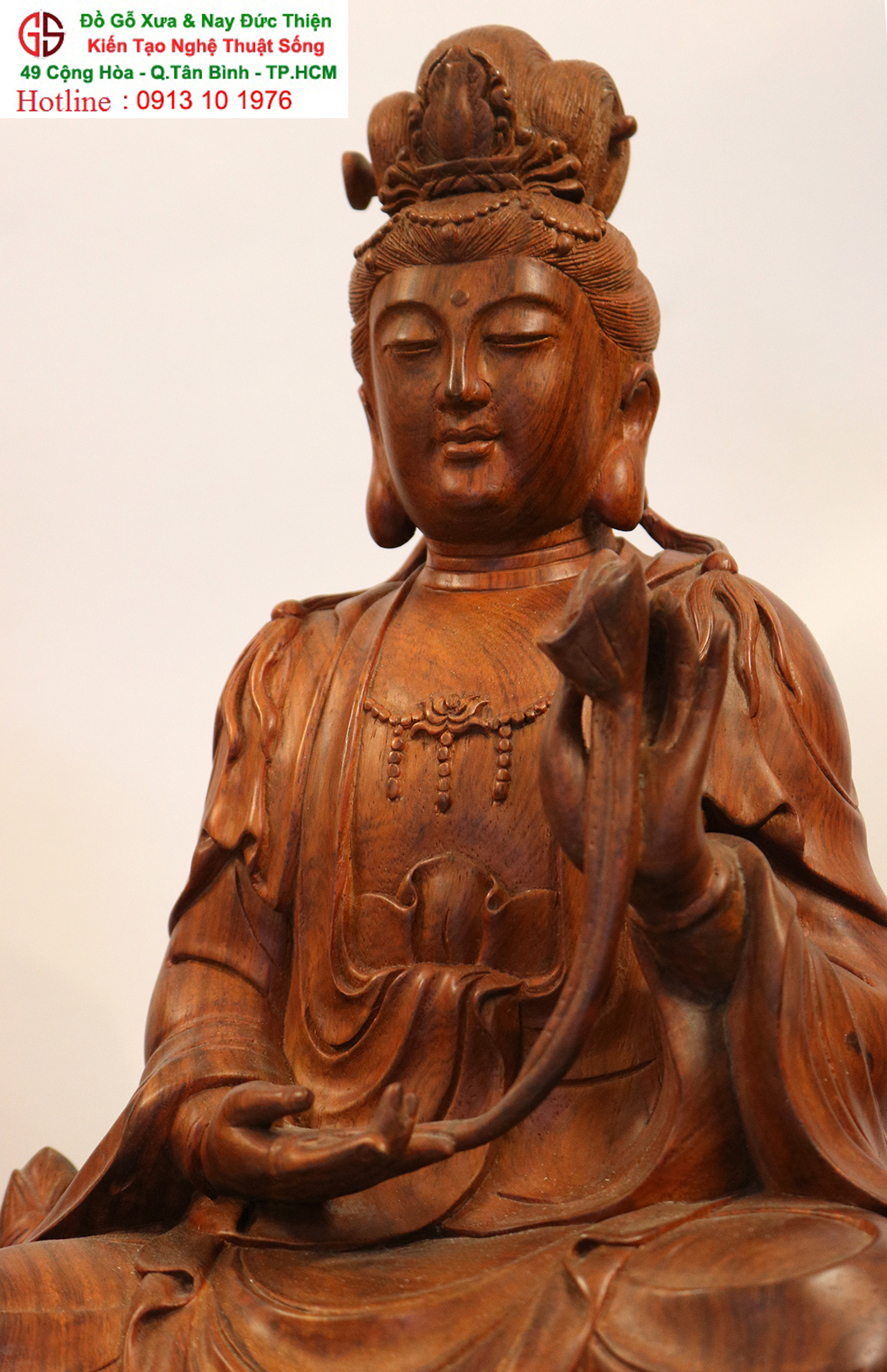 Những bức tượng phật quan âm được tạc bởi bàn tay nghệ nhân tài hoa, trên chất liệu gỗ hương quý hiếm, tất cả nguyên khối, không chắp ghép